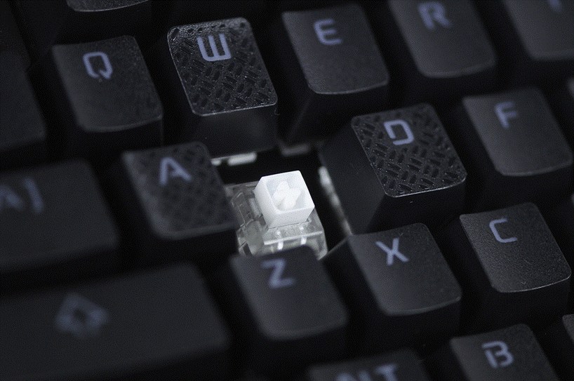按键涵盖了电脑操作时的常用按键,只要玩过吃鸡的玩家,一看就懂,这里就不赘述了。需要说明的是常用的WSAD键采用了类似钢板的橡胶纹路处理,不仅便于快速识别,也能够保证玩家在激烈的操作中长时间使用不打滑。