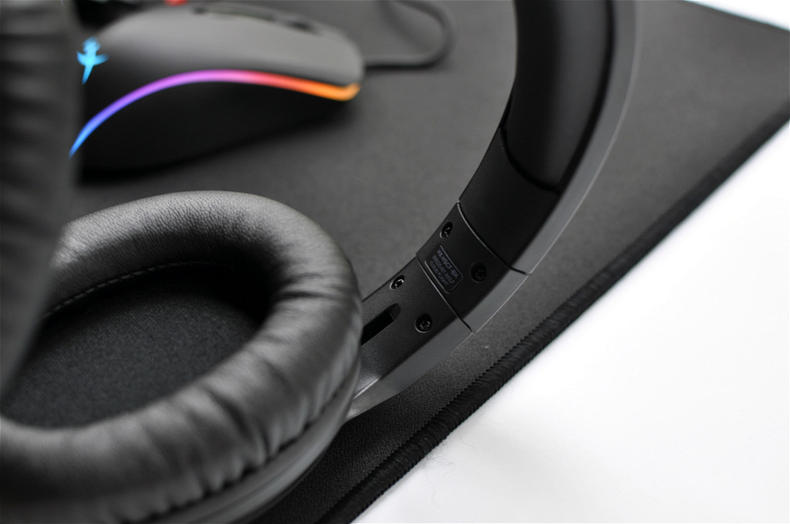头梁内侧展示,耳罩转轴可以向内转90度,保证了一定的收纳性,不过对于电竞耳机并不重要,但是对于无线电竞耳机,多少是有用的。
