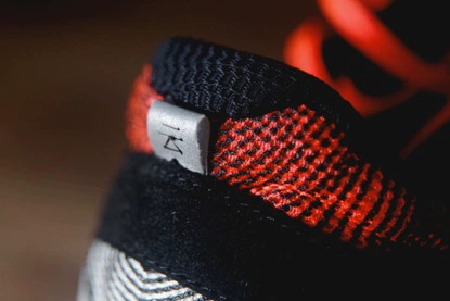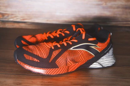 本次测评所拿到的Challenge202为云南特别版,一体式的工程网布材质打造的鞋面薄而且透气,鞋身以全红色为主调进行打造,辅之以黑色的线条点缀,如同燃烧的火焰一般刺激眼球;后跟位置加入白色的撞色设计,如同等高线般的黑色线条交织其上,令人印象深刻。