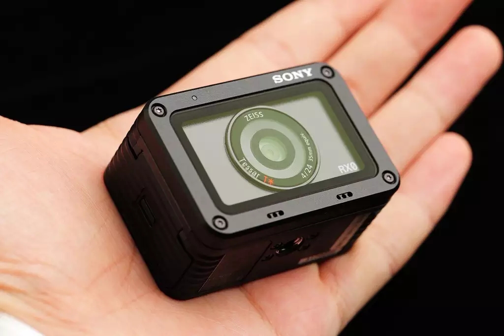 这款相机体积十分小巧,只有火柴盒大小,外观设计的非常时尚,继承了索尼黑卡系列的精髓,正面高强度玻璃下是一颗硕大的蔡司镜头,金属外框采用了四颗铆钉,显得商务范十足。