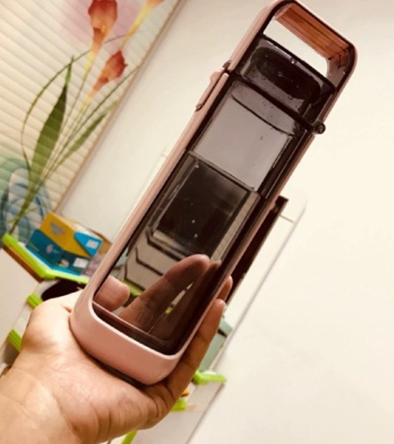 看图发现这是一款扁平方形的水杯,相比我们平常使用的圆形水杯,这样的设计又稳定又方便,还帮我们省去了出门时空间不够的烦恼,终于可以随时随地坚持养生啦。
