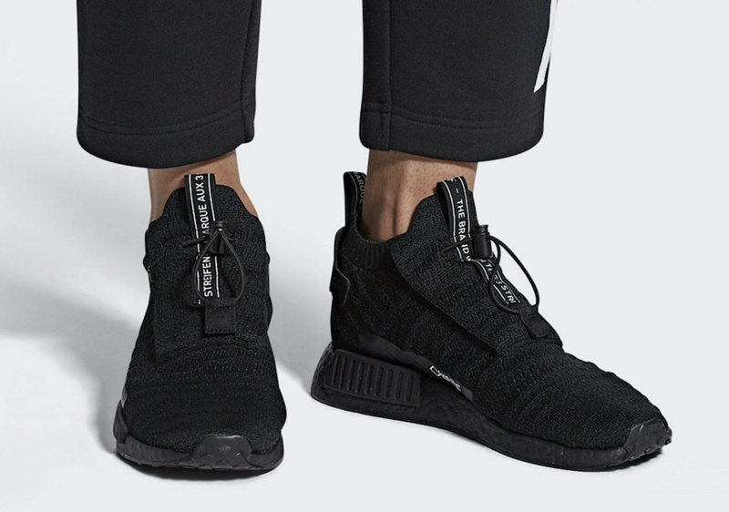 机能风加拉绳扣,NMD GORE的设计思路跟飞马35可以说是有那么一丢丢类似的。但是更酷的外形加上全黑的鞋面,让这双NMD更机能更酷炫了。