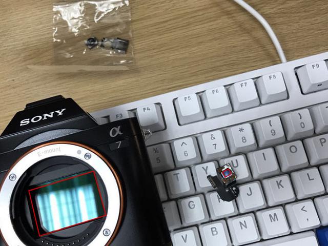 但这明显又解释不通,下面这张图右侧是 iPhone 8P 感光元件拆出来的样子,左侧是 A7,差距一目了然。即便 P20 Pro 用上了 1/1.7 英寸的感光元件,对全画幅来说还是沧海一粟跟沧海一舟的区别。