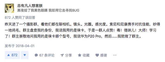 同样的问题其实在专业度更高的知乎也引起了热议,看了一圈下来,基本都在嘲讽 P20 Pro 蚂蚁憾大象,