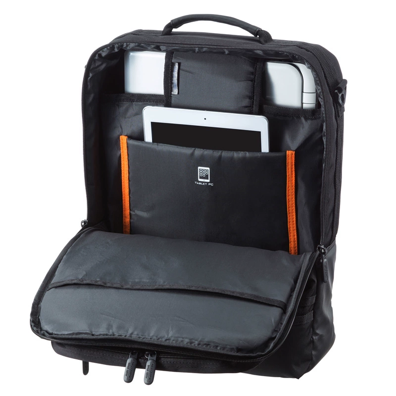 合理的多层收纳隔间设计,可以将笔记本和其它物件分开存放,这样收纳更加安全,有效避免设备间的磨损,同时收纳一目了然方便拿放。