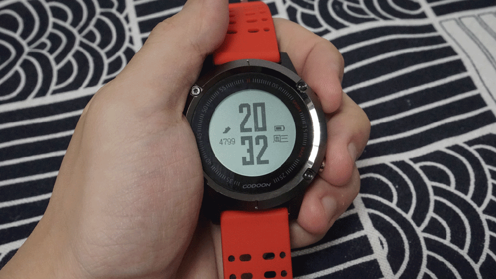 黑白反射式显示屏,屏幕分辨率低,显示颗粒感明显,看起来像极了电子表。可以点触控制增加了它的可玩性,同时更具备省电特性。手表内置300mAH锂离子聚合物电池,官方宣称,开启GPS运动模式,可续航时间最长15小时,持续待机最长35天。实测正常使用一天一运动续航一周,也不会有多大问题。