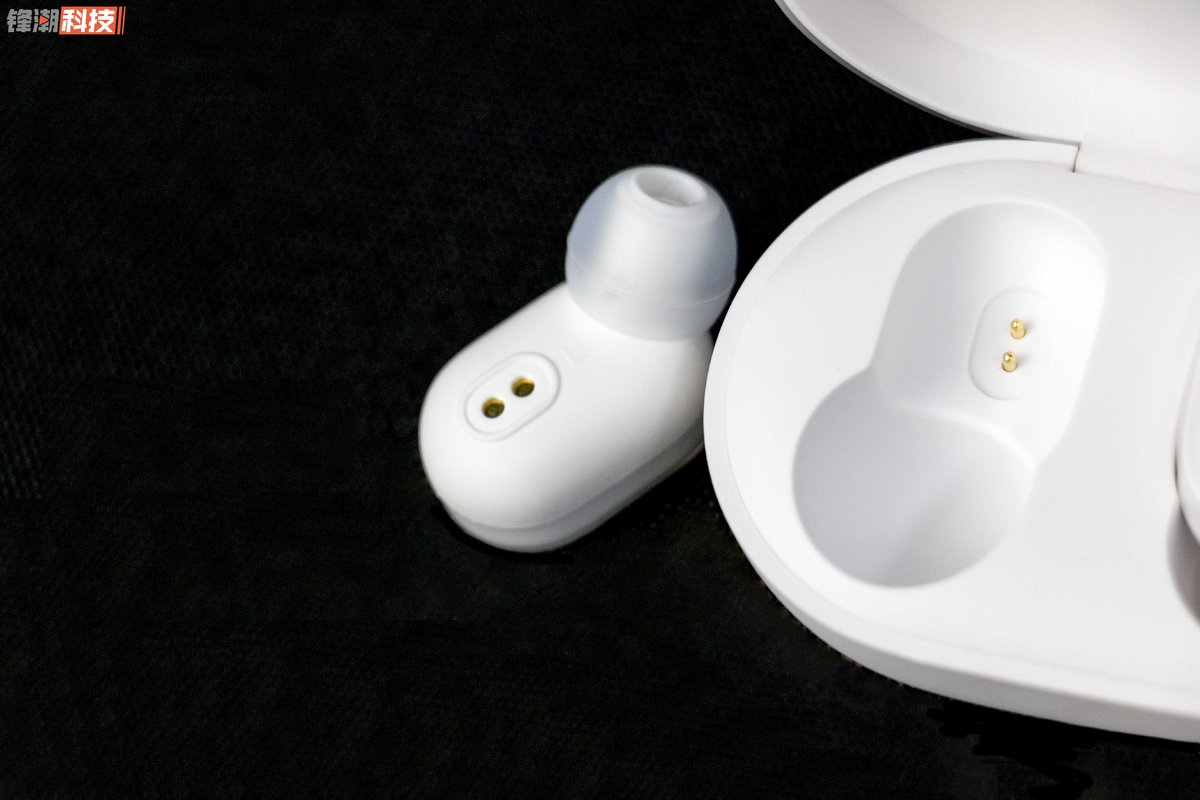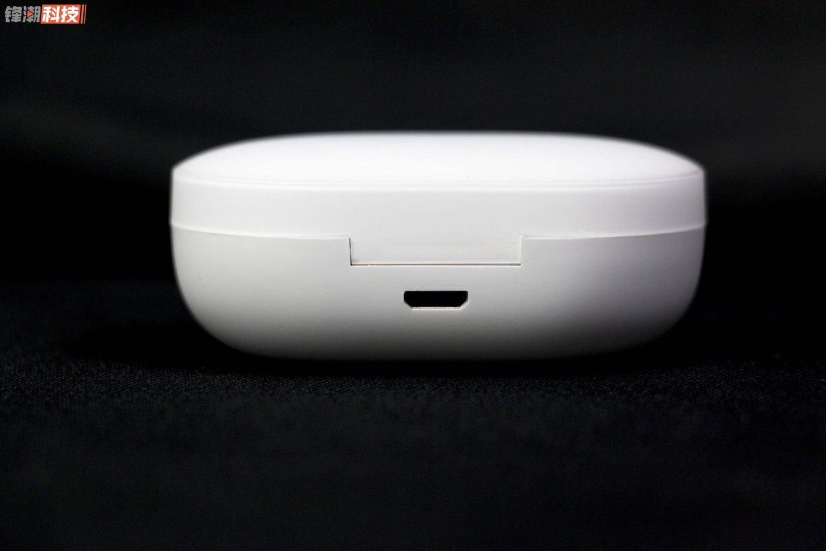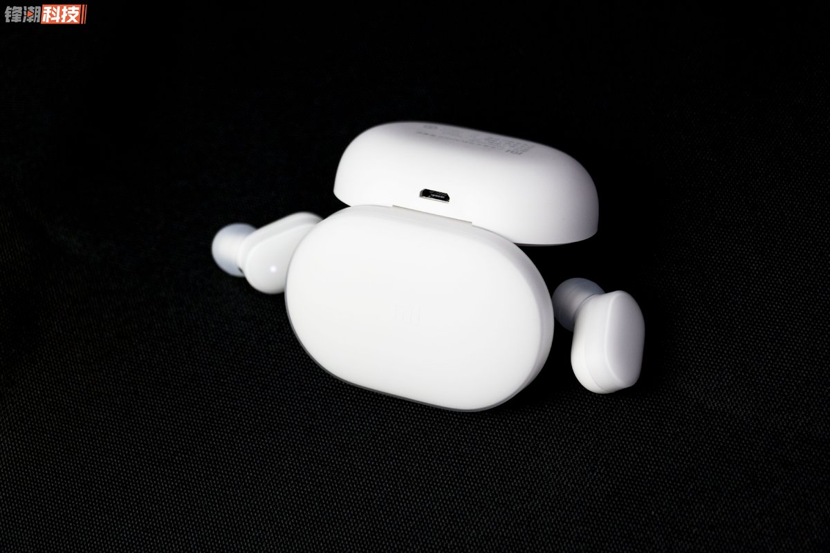 充电盒配有 Micro USB 接口,整体设计延续了小米一贯的简洁风,打开盖子,盒子内并没有常见的按键。耳机上各有一颗LED灯。