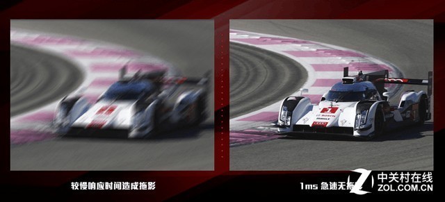 现在所说的响应时间一般是指更加贴近实际使用情况的灰阶响应时间。响应时间反映着显示器画面转换能力的实际表现,响应时间越短,画面转换得越是干净利落,否则即使刷新率很高,由于转换速度不够快,也会造成新一帧画面中带有上一帧画面的残留色彩,即所谓的拖影现象。目前主流电竞显示器的响应时间都降到了5ms以下,可以解决上面所说的拖影现象。