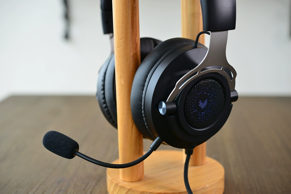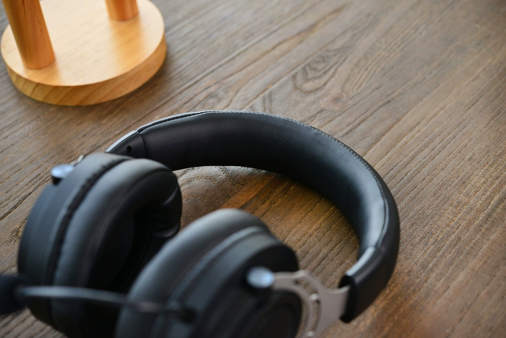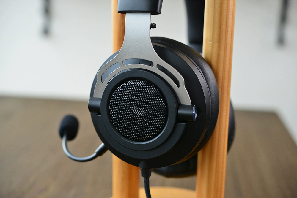 头梁部分VH300也采用的是皮质材质,内部包裹舒适棉,除了伸缩之外还能小范围的调节角度,适应不同体型的用户。