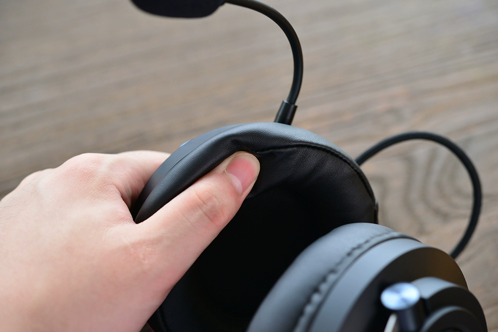 VH300采用了全包式大耳罩封闭设计,耳罩采用了蛋白皮材质,但内部填充要更加柔软。