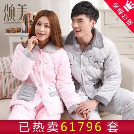 颂美珊瑚绒夹棉冬季睡衣情侣加厚棉袄大码可爱保暖家居服男女套装-tmall.com天猫