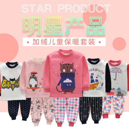 2016秋冬童装男童加厚保暖内衣套装女童宝宝秋衣秋裤家居服-tmall.com天猫