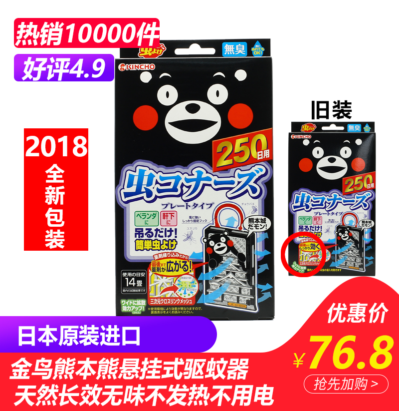 金鸟驱蚊熊本熊悬挂驱蚊器防蚊无味防水长效日本驱蚊日版原装63元