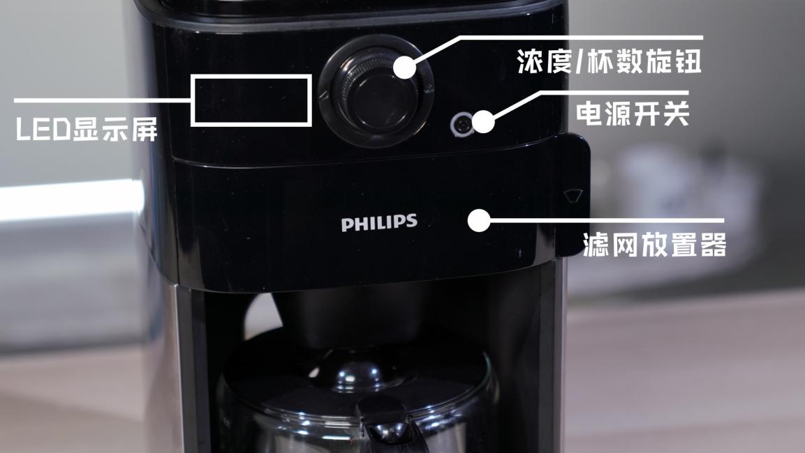 咖啡机的正面功能区域一览。怎么样,是不是突然感觉像是一股清流?这台HD7761的正面控制区域是我测试和使用过的咖啡机中最简约的设计之一。简单的好处就在于几乎为零的上手难度!手残党的春天来了~~~