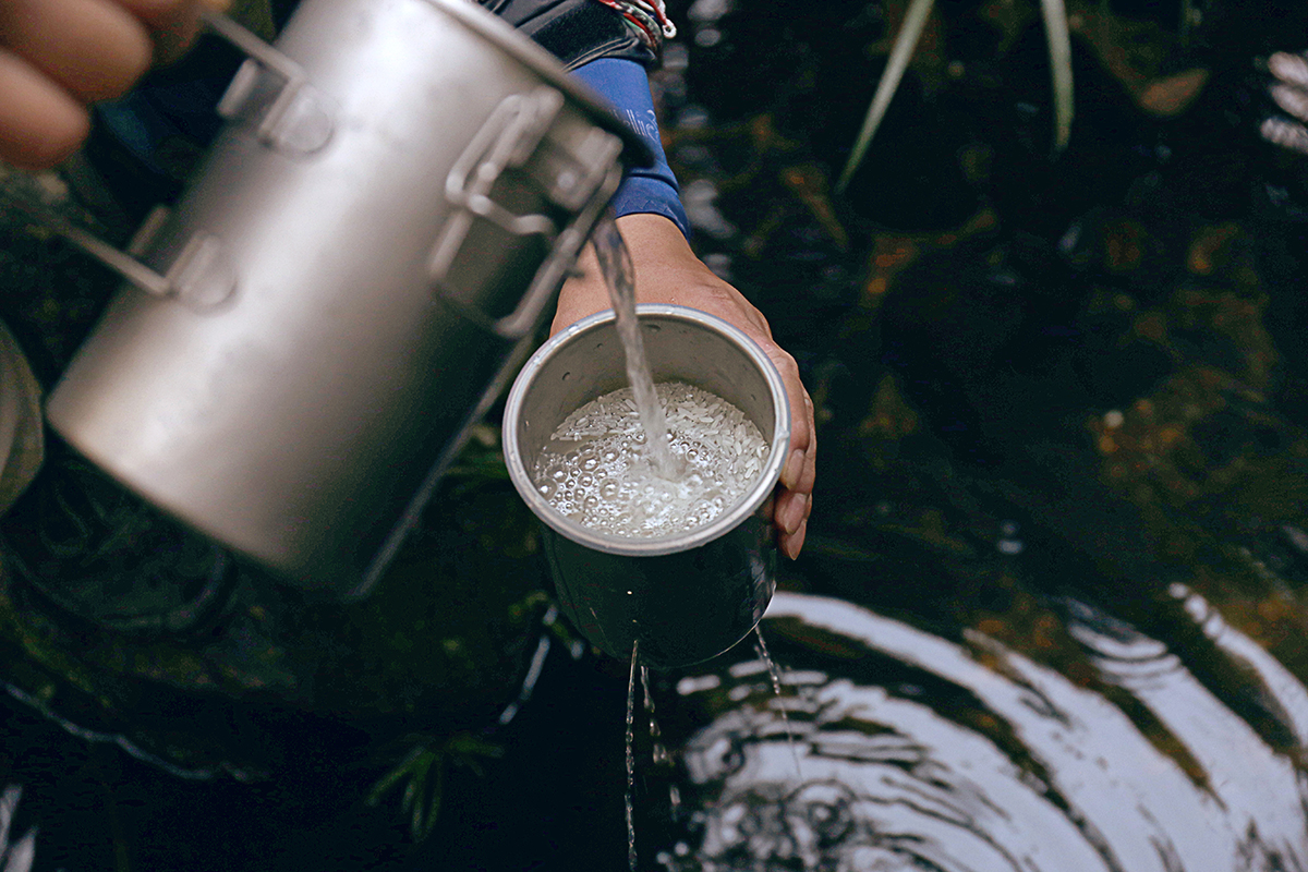 900毫升的大容量,不仅仅可以当做盛水工具,选用纯钛材质制作,内外单层锅设计,使它成为了烧饭、煲汤的野炊法宝。