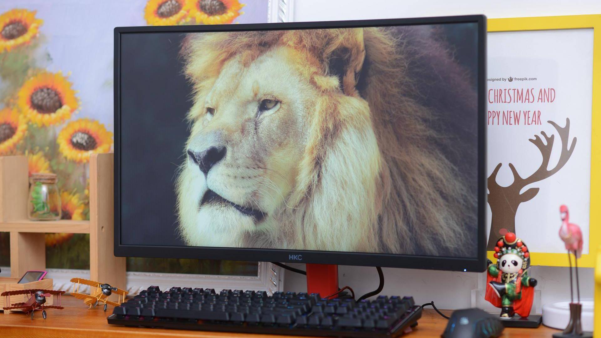 这款HKC G27显示器还配备了高色域背光方案,色彩还原能力将更强。它的NTSC色域覆盖率达到85%,sRGB覆盖率达到了110%。从这只狮子的毛发就可以看出,这款显示器的色彩展现能力还是不错的,细节的地方也可以看的很清楚。