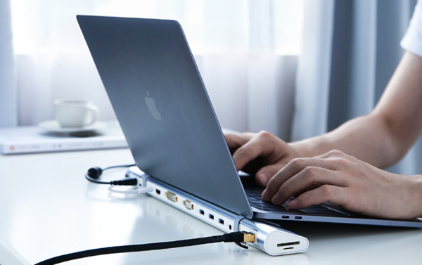 扩展坞可以弥补轻薄笔记本电脑本身携带附件较少的缺陷,这种设计让用户在办公室里能够享受到台式机一样的便利和舒适,在移动办公时又能发挥笔记本的便携性。