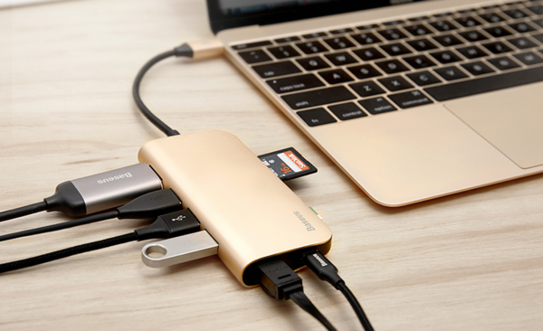 Baseus 倍思是深圳时商创展科技有限公司旗下的一加3C数码配件品牌,倍思的Type-C扩展坞有多种型号可供选择,采用全铝合金机身,阳极氧化工艺使得表面耐磨耐用。集合的接口包括USB3.0接口、SD/MMC接口、TF/Micro SD接口、HDMI接口、VGA接口、RJ45接口等,可以根据自身需求选择合适的一款。