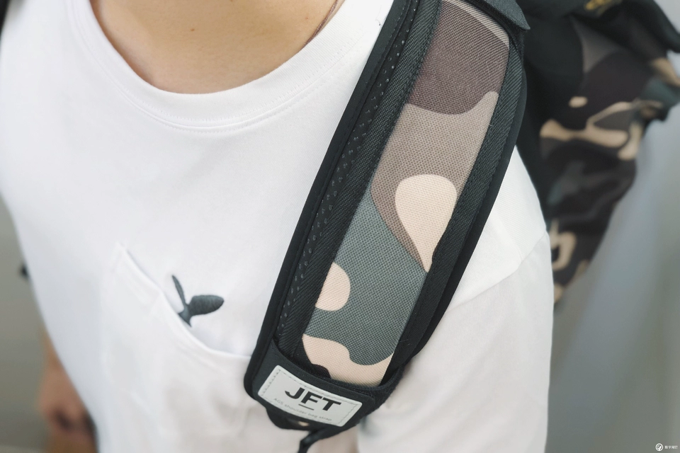 在我体验的这段时间,是把它安装在背包肩带上。文章开头我也提到,JFT 肩带模块相对以往我们用到垫肩来说,它的适配度更高一些。