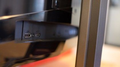 接口方面,配备了DisplayPort 1.2、HDMI视频接口,以及4组USB3.0接口。对于这么一个令人印象深刻的显示器,外接接口感觉有点少了,两个视频接口,接一台电脑再加一台机顶盒就没有多余的接口了,如果我要再接一台游戏机什么,只能拔下其中一个,这多少有点不方便。