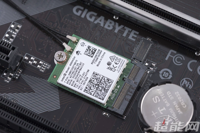 英特尔在300系主板芯片上整合的无线网卡属于AC9000系列产品,目前常见的就是上图这款AC9560无线网卡。从外观上来看这款AC9560无线网卡似乎仍然采用独立设计,但实际上这款无线网卡采用的分离式设计,我们看到的是其PHY层,也就是天线以及信号放大器部分,而无线网卡的MAC层也就是负责控制的部分是整合在主板芯片中的。