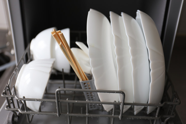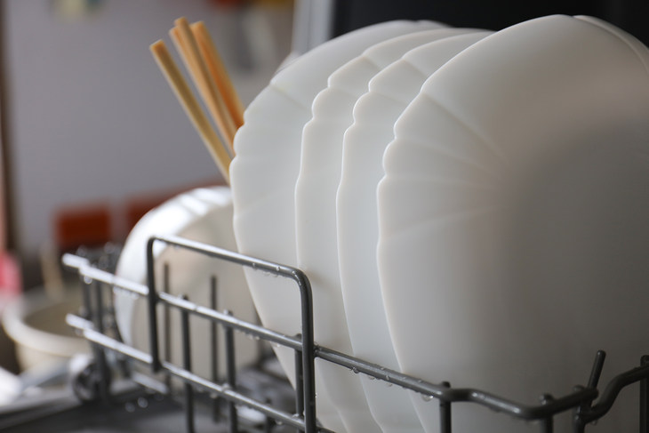 另外因为我们是刚刚结束程序时就将餐具取出,所以能看出餐具上面有轻微的水渍,其实在清洗结束后机器会自动进入风机循环换气干燥程序,每次拿出来的餐具既干净又干爽。