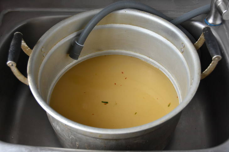 接下来再来看看它的耗水耗电问题,如果洗干净碗的代价是高昂的水费和电费,想必是很多人难以接受的。刚开始我们担心耗水量会比较大,特意拿出了容积比较大的蒸锅,但最后排出的污水只覆盖了下面一部分,耗电量也仅有0.24度电,综合来看这肯定是比人工手洗要节能的。