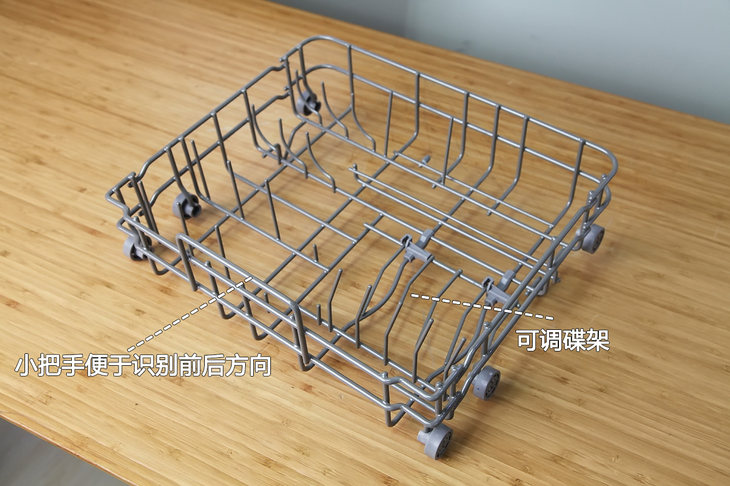 碗篮其实可以完全拿出来,这时问题来了,到底哪头应该朝前呢?其实碗篮的前面的小把手就是为了让识别方向用的,当然每次向外拉碗蓝的时候也都离不开它。