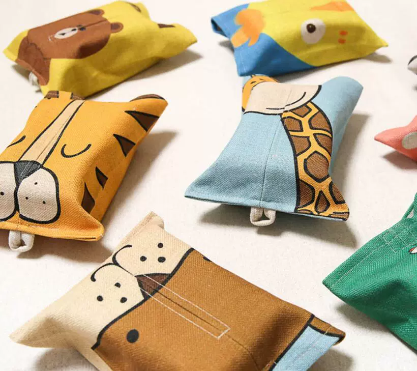 小号棉麻收纳餐巾盒抽纸盒 卡通纸巾包布艺挂式/纸巾套客厅汽车用19.9元