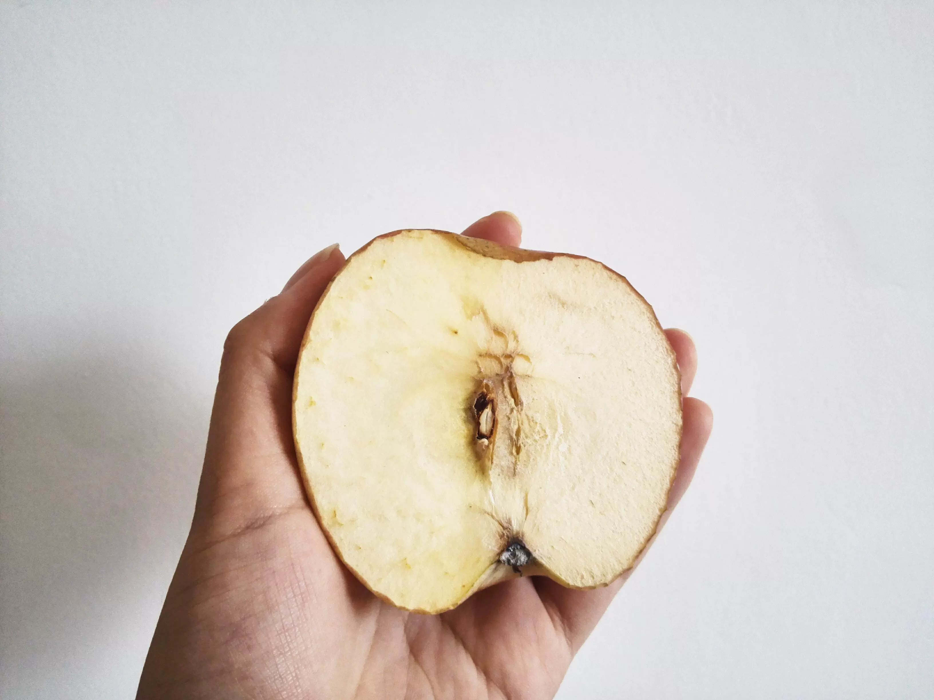 我做了一个小实验,在苹果的一边涂抹上这款防晒隔离乳液,另外一边是正常的状态,放置在太阳底下进行暴晒,观察一下,它的作用吧。