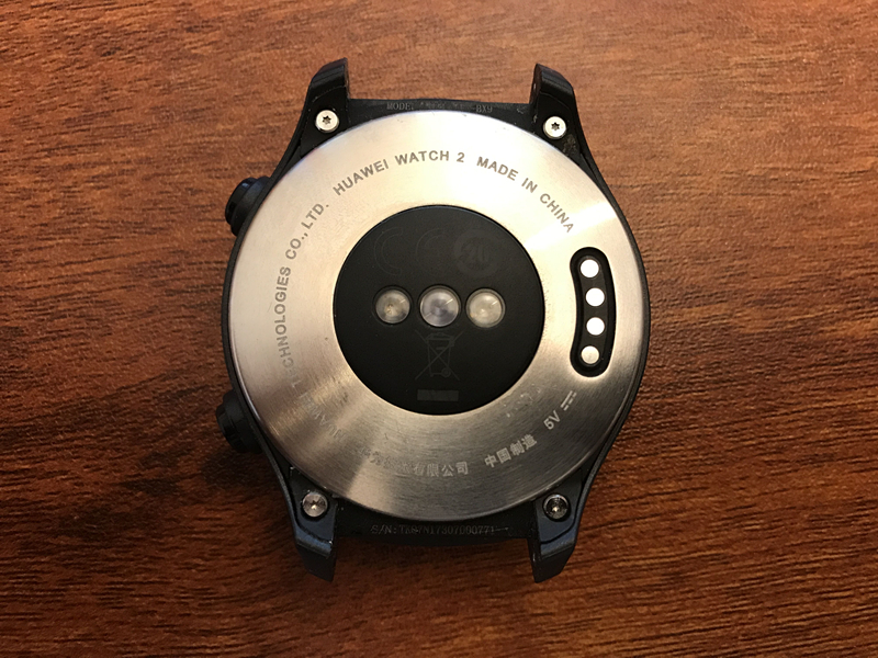 表盘背面右侧的充电接口需要注意,充电之前擦一下,如果有水的话,可能会影响到充电效果。中间的三个圆点是用来检测心率的。