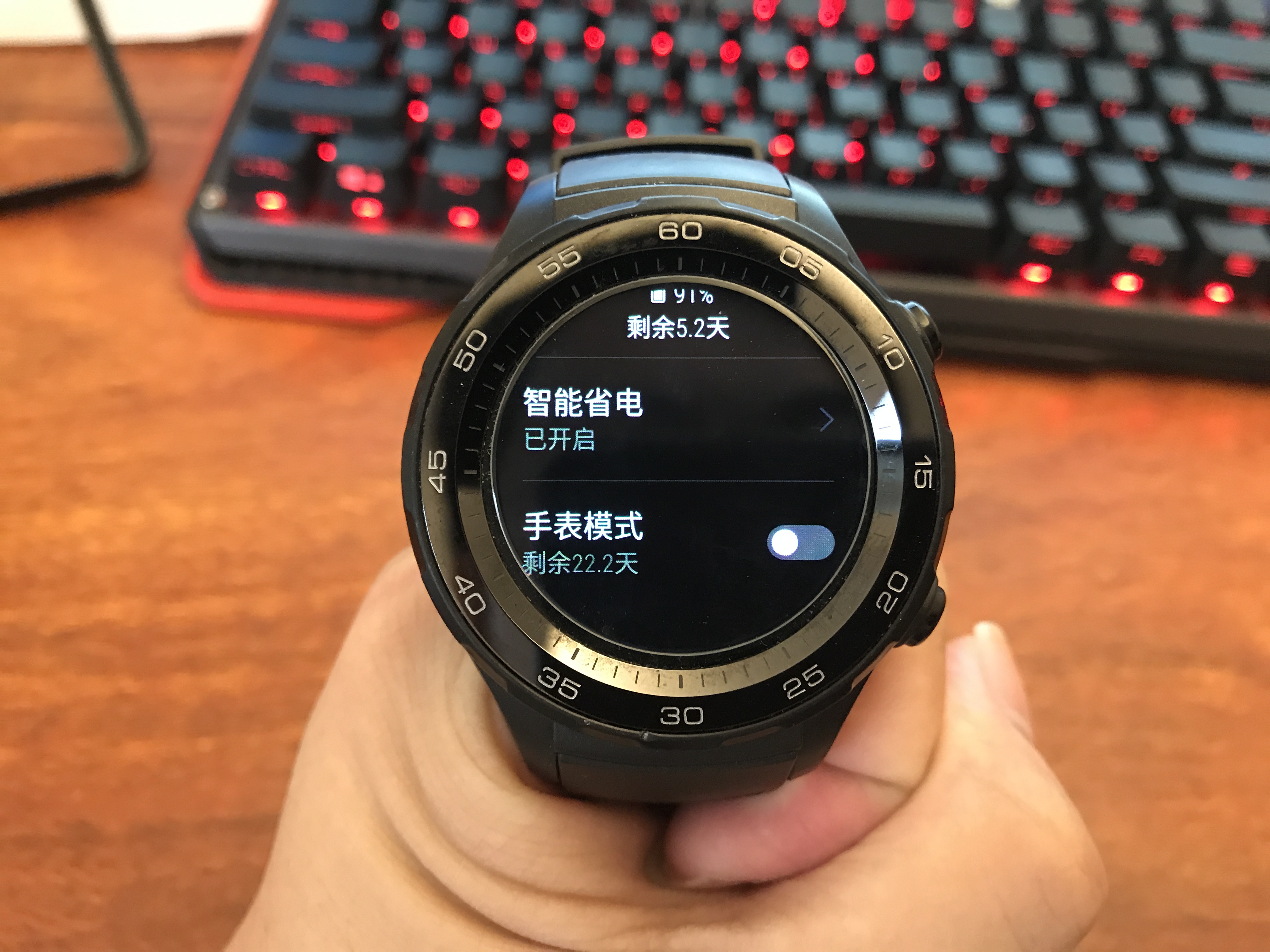 我使用手表在开启了蓝牙、GPS定位的情况下,智能省电开启,从100%电量到10%报警,表显时间大约是在5天左右,实际时间是在一天半,因为我还开启了运动监测。
