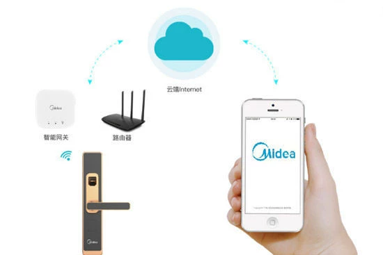 美的la014m指纹锁家用防盗门智能锁电子锁密码刷卡锁云锁玻璃门1999元