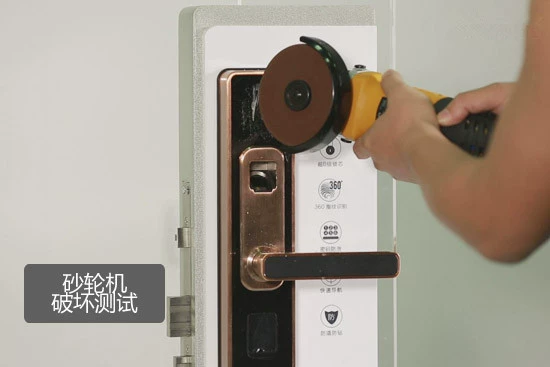 在电钻和砂轮机的多次破坏下,美的智能云锁的密码输入区域和指纹区域面层的亚克力有破损,在这样的情况下,按动密码和使用指纹验证,智能云锁能正常解锁,证明虽然美的智能云锁的表面遭到破坏,可丝毫不影响内部电路的识别功能,电钻和砂轮机的暴力破坏测试完美通过。