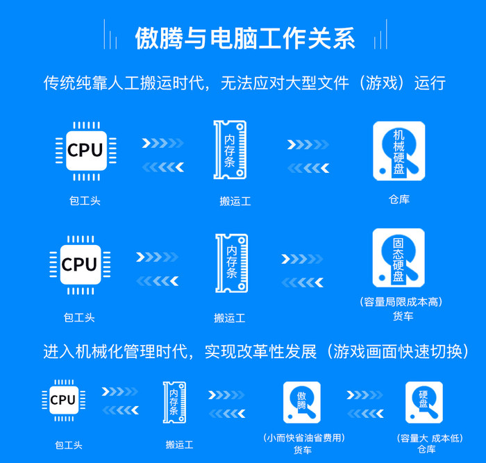 傲腾可以看做是低延迟的M.2 NVMe SSD,但需要搭配机械硬盘来使用,作为高速的缓存来使用。所以它更像是一个闪存加速盘,称其为傲腾闪存可能更加贴切一些。此外,从存储介质和产品形态上看,傲腾内存也与传统内存大为不同,倒是在外形上与小容量的M.2 SSD有些神似。