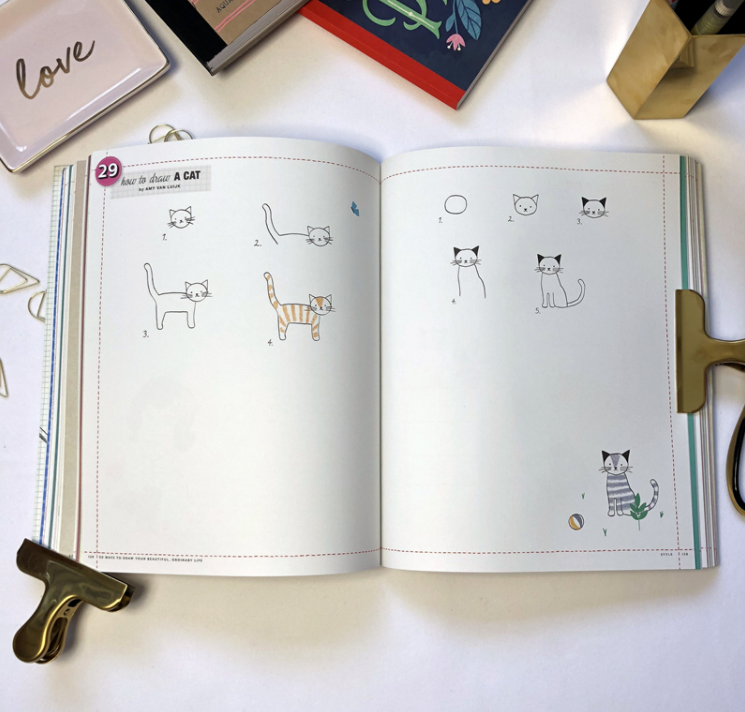 教程内容详实,制作的过程比较简单,做手帐的小萌新们,在第一次画图案时可能都会感觉到无从下手,比如一只猫咪,或者一张好看的餐桌,这本书里会从最简单的描线开始,一直到你画出成品,不管是复杂些的连衣裙还是一些小建筑物,通过这本书,你都可以一笔一笔的给描绘出来,书中还留有一些空白页让你练习,所以尽管放心使用吧。