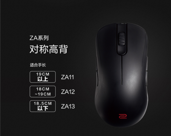 明基的ZOWIE GEAR鼠标分为右手专用的EC-A系列、对称低背的FK系列和对称高背的ZA系列,每个系列又分为了大小两种尺寸,覆盖更多类型的玩家。
