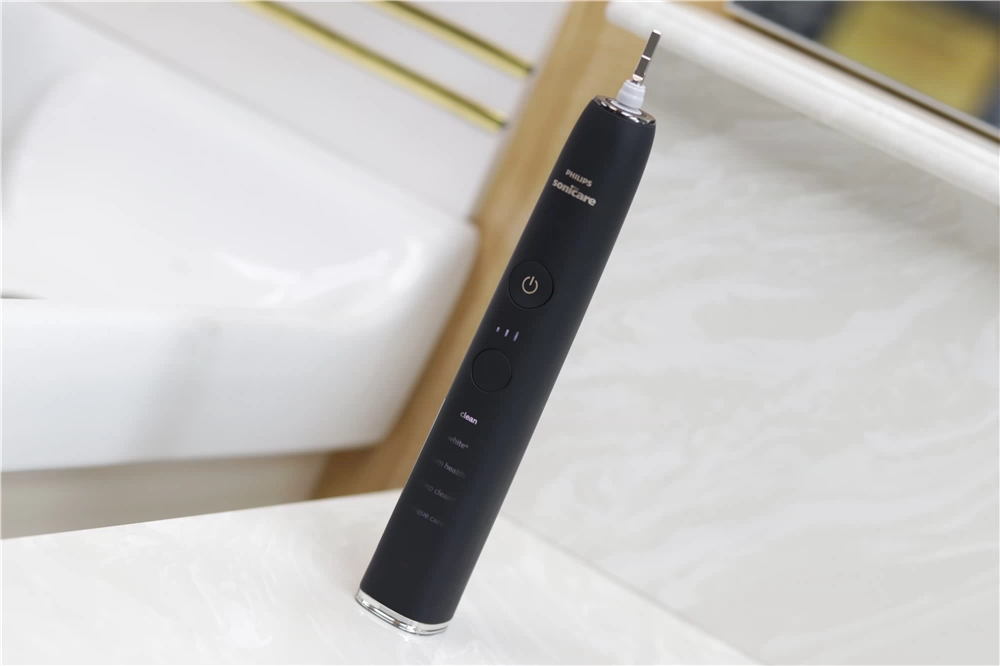 在机身结构设计上,飞利浦电动牙刷HX9924也依旧非常讲究,刷头可轻松拆卸,整个电动牙刷的手柄也采用特殊处理,不仅能够使握持时的握感更加舒适,就算在使用过程中手上有水,也不会轻易打滑,整体感觉还是很不错。