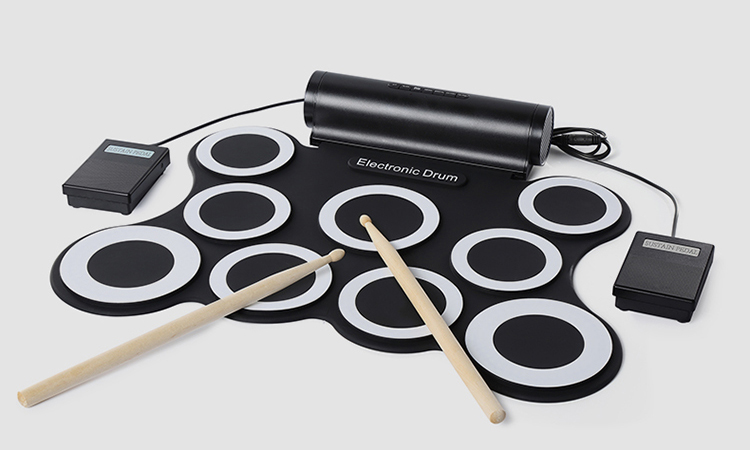 别小巧这一片薄薄的像坐垫一样的东西,敲击它就如同敲击真实的架子鼓一样,音色完全高度拟真。而且大小只有几十厘米,重量也相当的轻,可以放在家里各处,也可以带在身上随人们一起去到任何环境,不会占用多少空间。