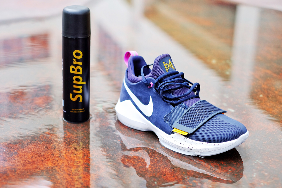 最简单的也是最实用的防护措施,就是这个小黑瓶,来自美帝的SupBro。(鉴叔认为,外包装略为山寨,是个比较遗憾的地方)。 SupBro纳米喷雾,主要的作用就是让鞋面形成一个透明的保护层,隔绝来自雨水和灰尘的侵袭,持久保持干燥洁净。