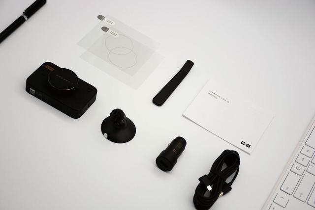 打开包装盒,可以看到小米米家行车记录仪1S1S配备了电源线、车载充电器、支架、走线撬棒、使用说明书(内含三包卡)和本尊。