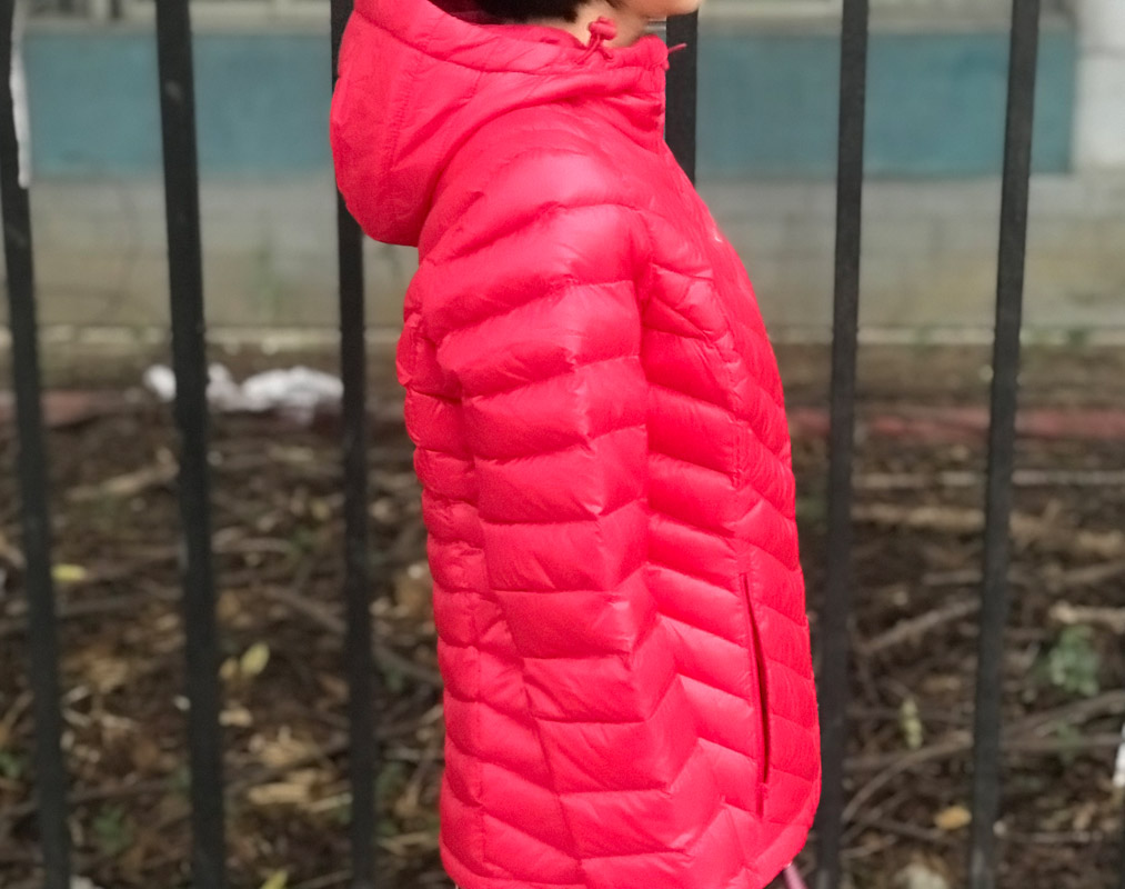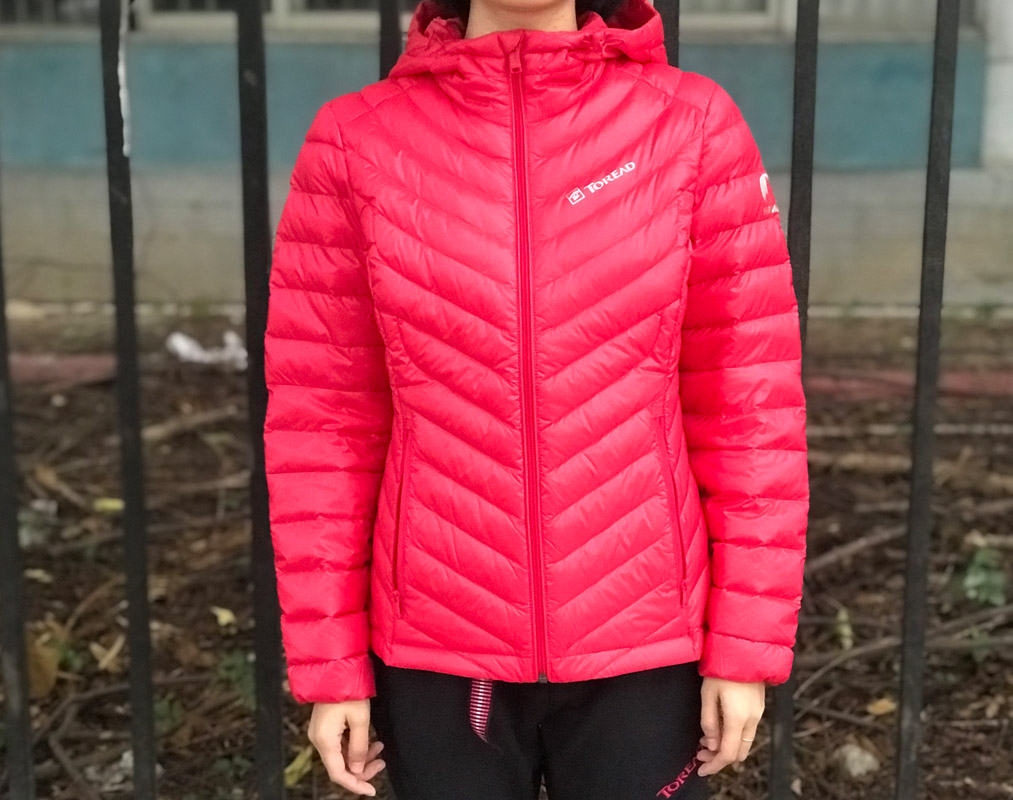 羽绒服前后面的车线分别采用斜向和横向的处理方式,虽然只是细节的呈现,却能提升整体的美观度。了解完这款羽绒服的外观后,让我们回到“重量”这个话题。得益于超轻薄密度尼龙面料的运用,从试穿员上身效果便可得见,这款羽绒服丝毫没有臃肿感。以女款M码为例,整件重量控制在300g以内,可谓轻若无物。如果你将这件户外超轻羽绒服视为日常服饰,其实也没有什么问题。