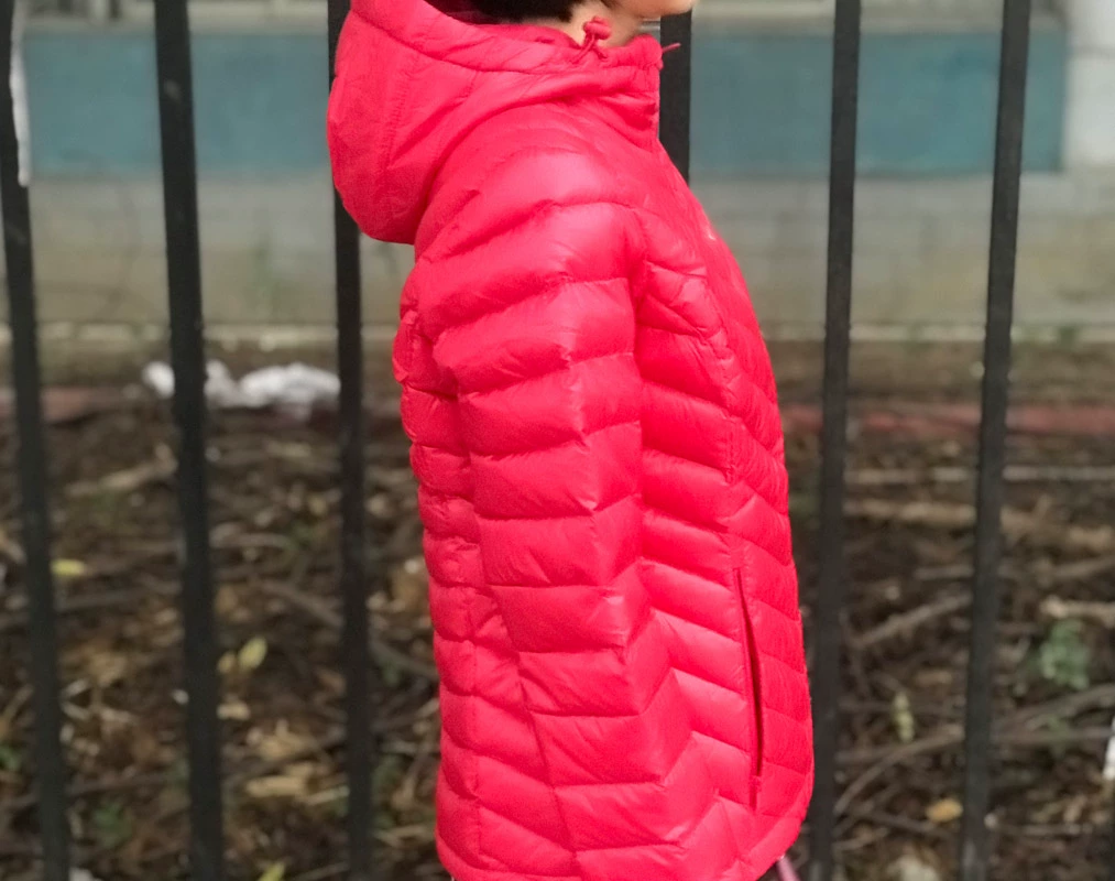 羽绒服男女款的户外机能性是相同的,在这个大前提下,二者的差异主要体现在版型处理。虽然同为立体剪裁,但女款进行了收腰设计。试穿员身形纤瘦,在内搭不多的情况下,收腰处理在观感上更为直接。对于女生而言,这样修饰身形的设计更具吸引力。