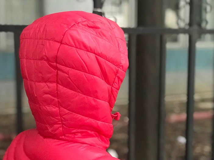 除了防泼水性能,这款羽绒服还有一个细节值得大家点赞,那便是拉链。从实操效果来看,结实、耐用、不卡顿,这三个评判标准均能满足。