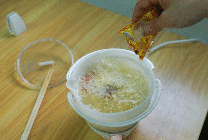 最后再加入卤蛋,再等个 1 分钟,就可以出锅啦!(要是办公室有老干妈就更好了呀)