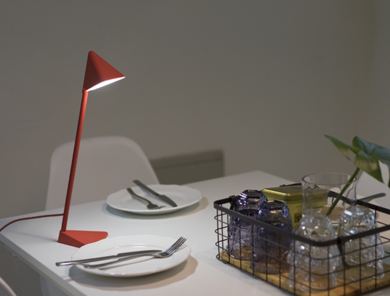 喜欢它,一是因为线条非常简洁,没有多余的装饰,卧室、客厅、书桌,随便放哪里都行。而另一个很重要的原因是,这盏台灯可以随意变换造型!