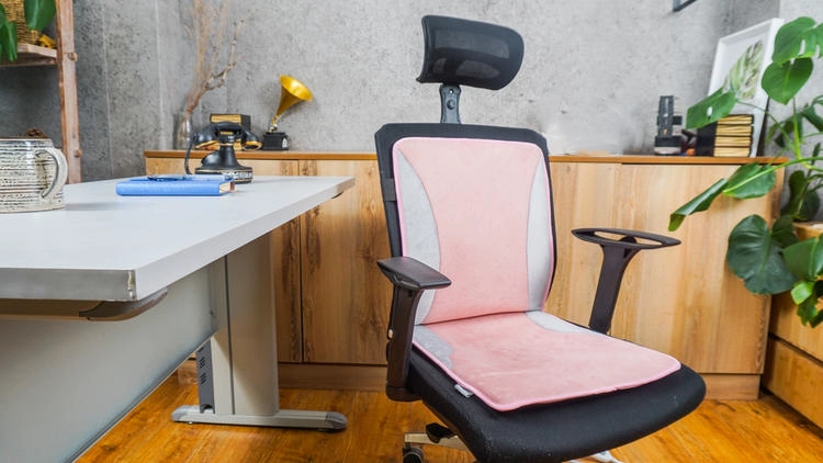 它平铺在椅子上时的样子,是恰好能与办公椅坐面和靠背吻合的。颜色还有点小清新,瞬间就为黑色椅子提升了颜值,装饰效果还是很不错的吧,颜控们有没有戳中你内心呢!