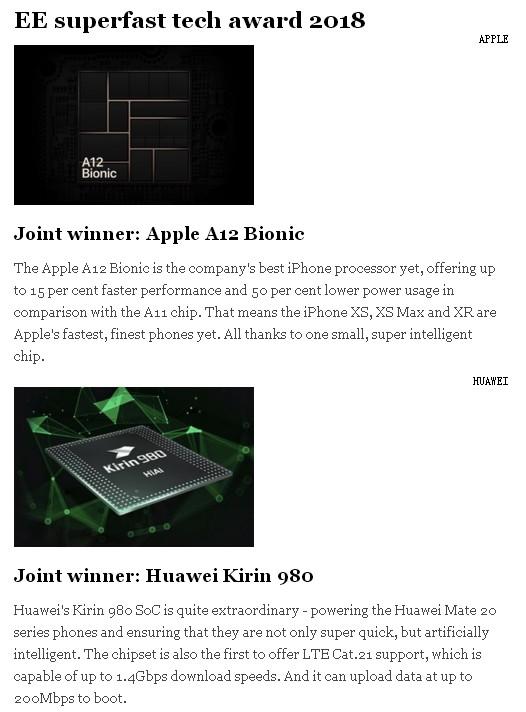不仅手机出色,来着华为的手机处理器麒麟980也倍受好评,与Apple A12 Bionic并列冠军。