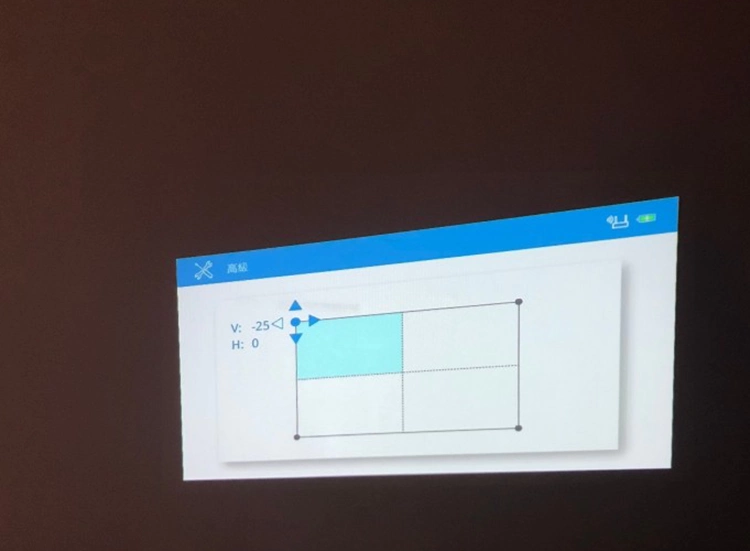 EZCast Beam J2自己有一个比较智能的功能叫自动垂直梯形校正,如果EZCast Beam J2放在桌上并把投影机前方的角度垫高,因为投射角度变高所以画面会变成梯形,EZCast Beam J2会自动侦测墙面调整成最接近四方形的画面。