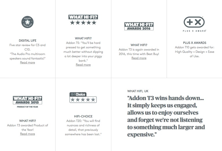 从创立之初起,Audio Pro就使用独创的ACE-Bass技术,使产品在小箱体的基础上拥有优秀的低音。在40年的发展过程中,以Karl-Erik Ståhl为首的攻城狮团队,不断对产品技术、外观进行改进,收获了众多业界好评。